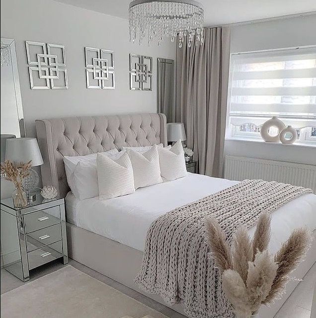 تنجيد مخملي ناعم بلمعة خفيفة لمظهر فخم. ظهر منجّد مريح وحضور بصري راقٍ لغرفة النوم. ألوان محايدة سهلة التنسيق.